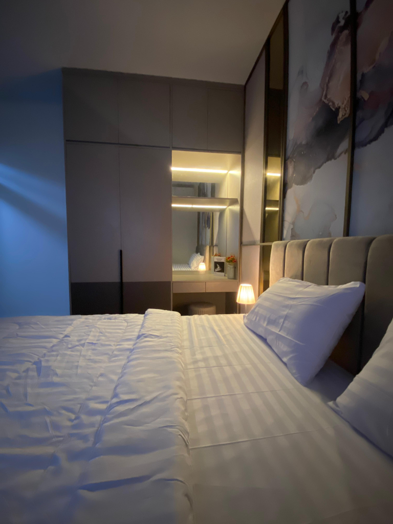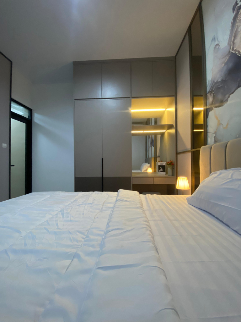Kami menciptakan ruangan ini sebagai bentuk apresiasi kami kepada klien, terkadang permintaan klien dengan idealis kami berseberangan. Namun dengan pendekatan yang baik, kami selalu mencari jalan tengah untuk membuat desain yang tidak hanya indah dipandang, tetapi juga fungsional